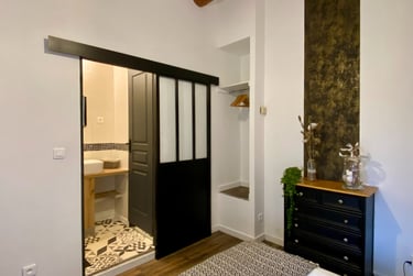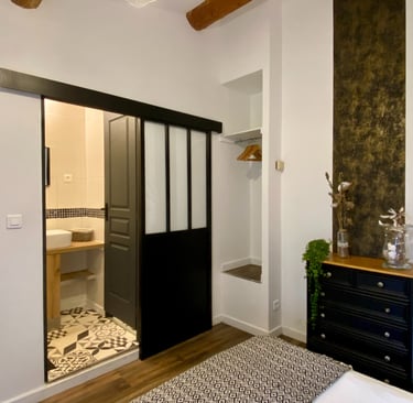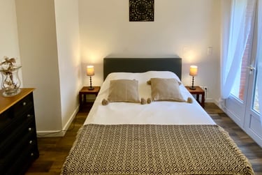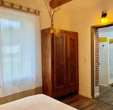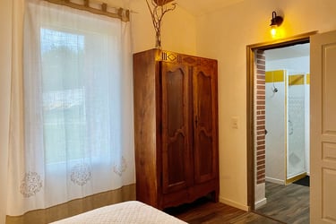 Une suite parentale indépendante équipée d'un lit en 140 cm équipée d'une salle d'eau et WC.