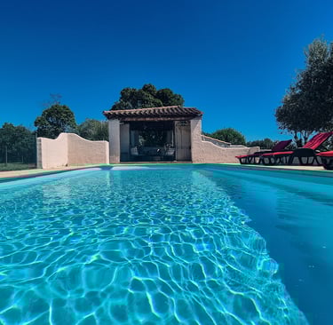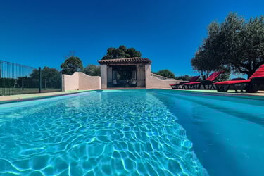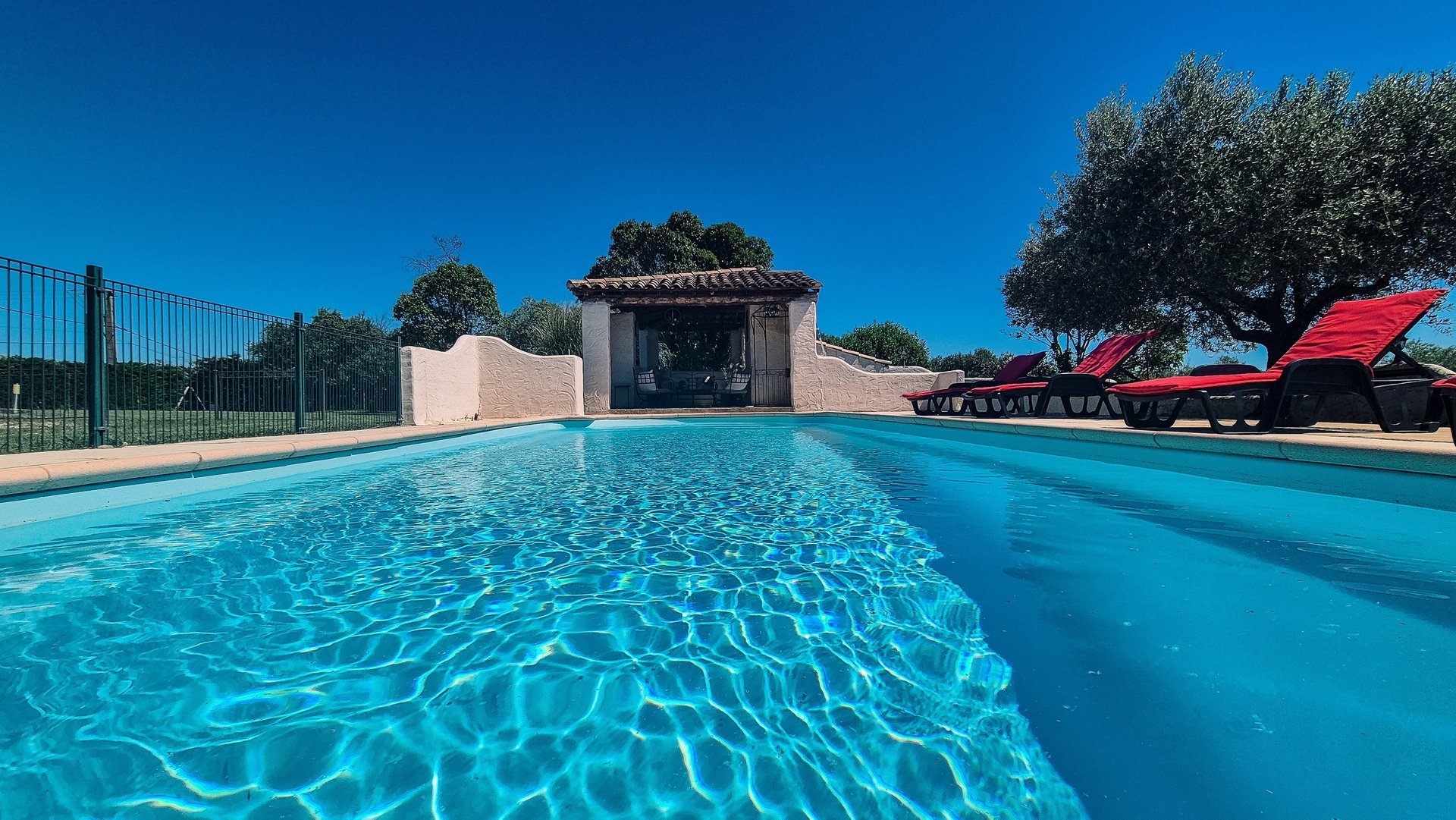 Piscine 9,5 x 4.5 m sécurisée, son pool house.