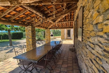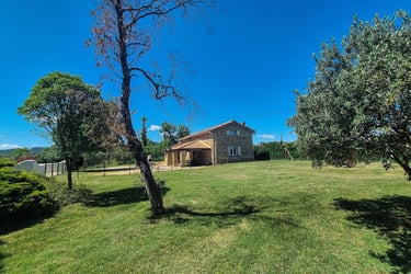 Cette maison spacieuse peut accueillir jusqu'à 9 personnes. Profitez de moments de détente sur la terrasse couverte, tout en admirant le paysage environnant. La piscine privative vous invite à vous rafraîchir sous le soleil ardéchois, offrant une expérience paisible et ressourçante dans un cadre idyllique.